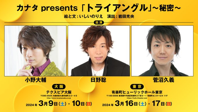 リーディングアクト 再演/カナタPresents『トライアングル』~秘密~チケット発売情報のお知らせです。